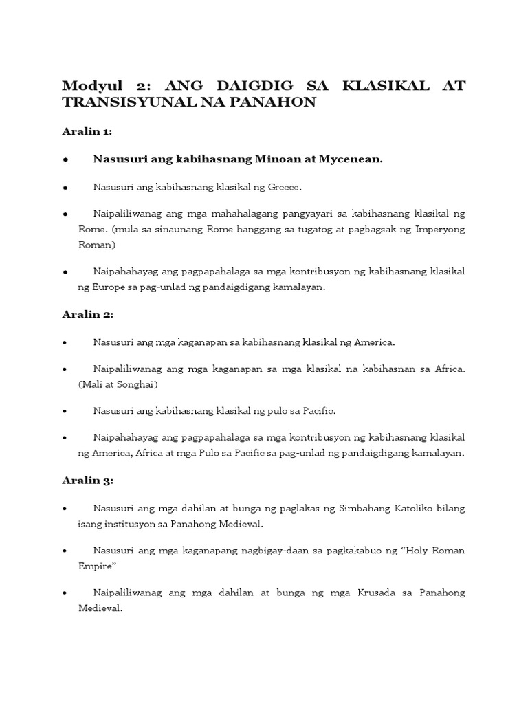 Araling Panlipunan Kasaysayan Ng Daigdig Module 2