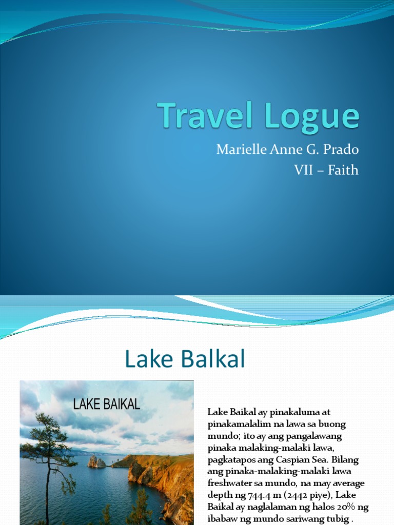 27062017 Ilog Malaking likas na daanang tubig na kadalasang tumutuloy sa dagat o karagatan Yangtze River Ganghes River 22. Ito ang lawang tabang sa daigdig na may pinakamaraming bolyum na naglalaman ng halos 20 ng mga di-nagyeyelong tubig tabang at nasa lalim na 1637 metro 5371 talampakan ang pinakamalalim. Pangalawa ito sa Asya sa pinakamalaking lawa at pang-pito naman sa mundo sa sukat.