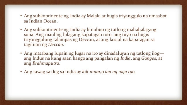 Madalas itong tinatawag na heograpo na sub-kontinente ng India dahil inihihiwalay ito ng mga kabundukan kaya maituturing itong halos isang hiwalay na kontinente. HeograpiyaHeograpiya ng Daigdig ng Daigdig 2. Impluwensiya ng Heograpiya sa Sinaunang Kabihasnan Lesson 9.