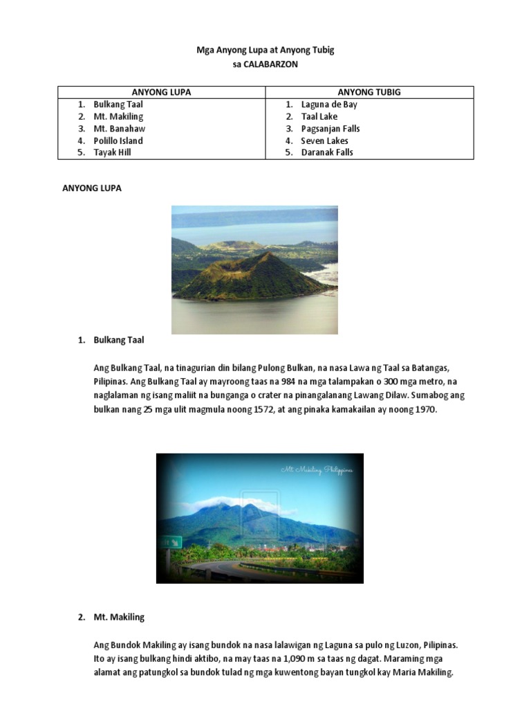 Mga Anyong Lupa At Anyong Tubig
